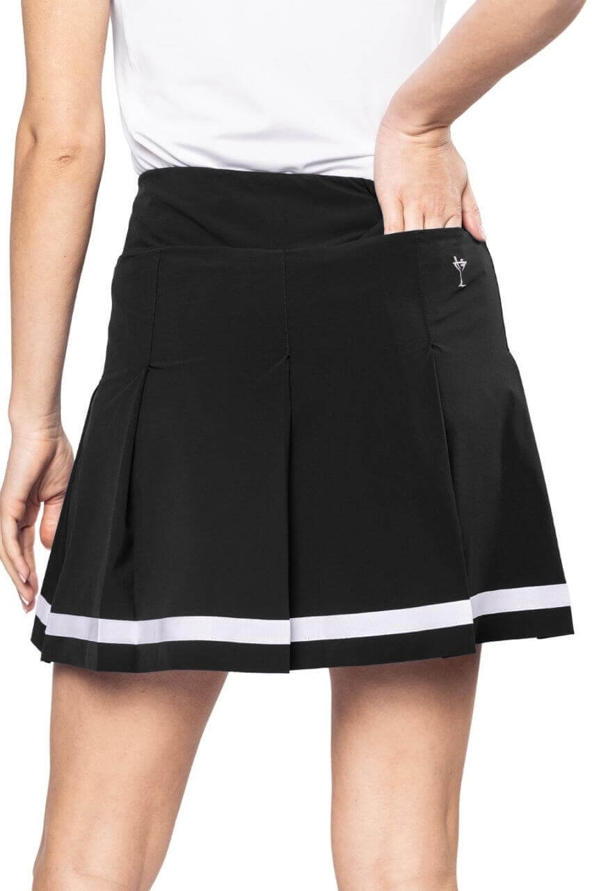 Step up your athletic style with the Be An Athlete Pleated Skort. This daring take on a best-seller features bold sporty stripes and sharp pleats that command attention on the golf course or tennis court. Designed with two back pockets, it blends edgy fashion with functional performance, giving you the confidence to play hard and stand out.