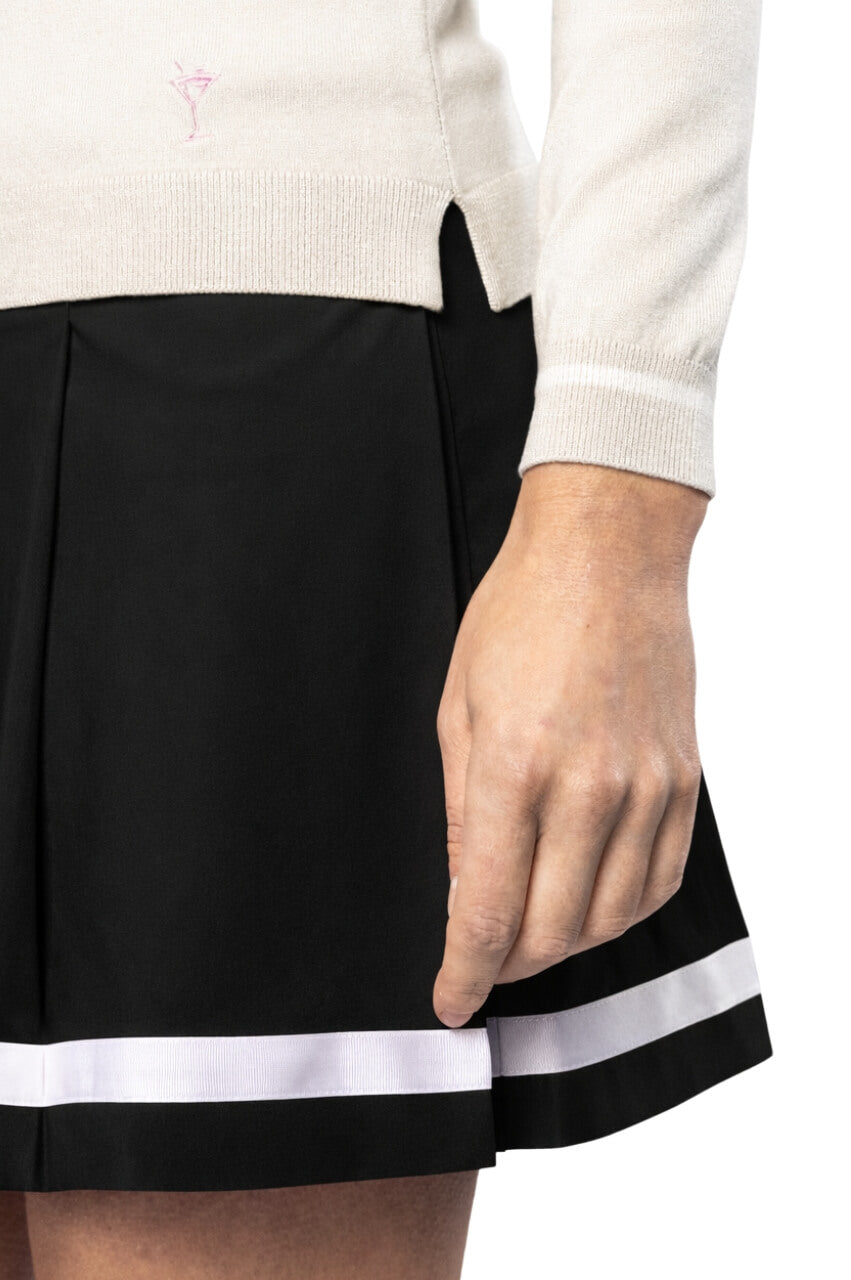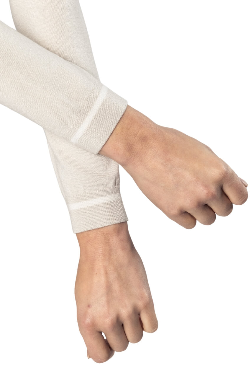 Your favorite sweater just got an upgrade. Add a little fashion to your closet with our Khaki/White V-Neck Sweater with a striped white trim at the cuff. The new, crisp V-Neck cut is flattering and makes layering easy. The fabric is cozy and warm, yet stretchy and lightweight: a perfect look for both on and off the course.