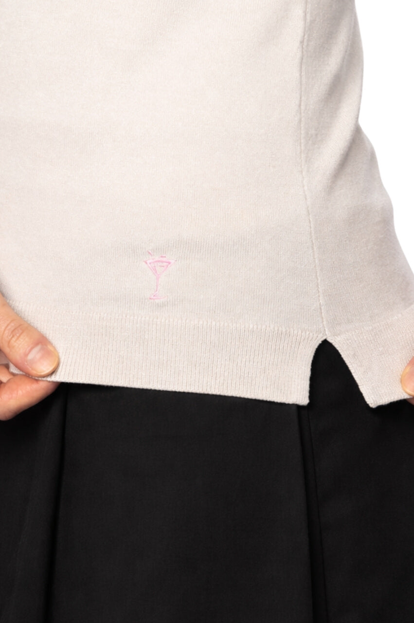 Khaki/White Stretch V-Neck Sweater